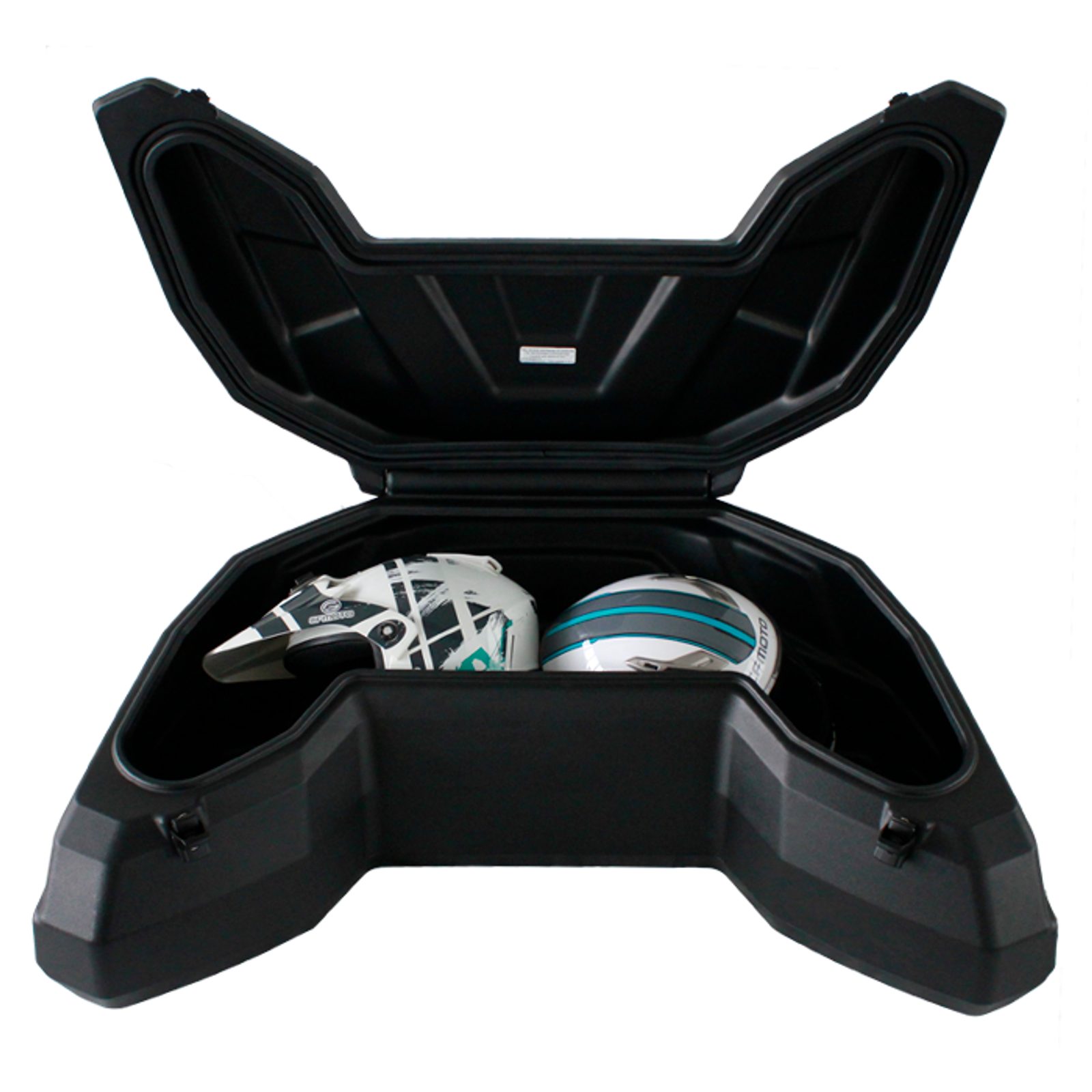 Moderný priestranný odolný zadný box CFMoto v atraktívnom dizajne navrhnutý priamo na stroj Gladiator X550 / X600 s priestorom pre uloženie dvoch heliem. Nadpriemerný vnútorný objem 105l!