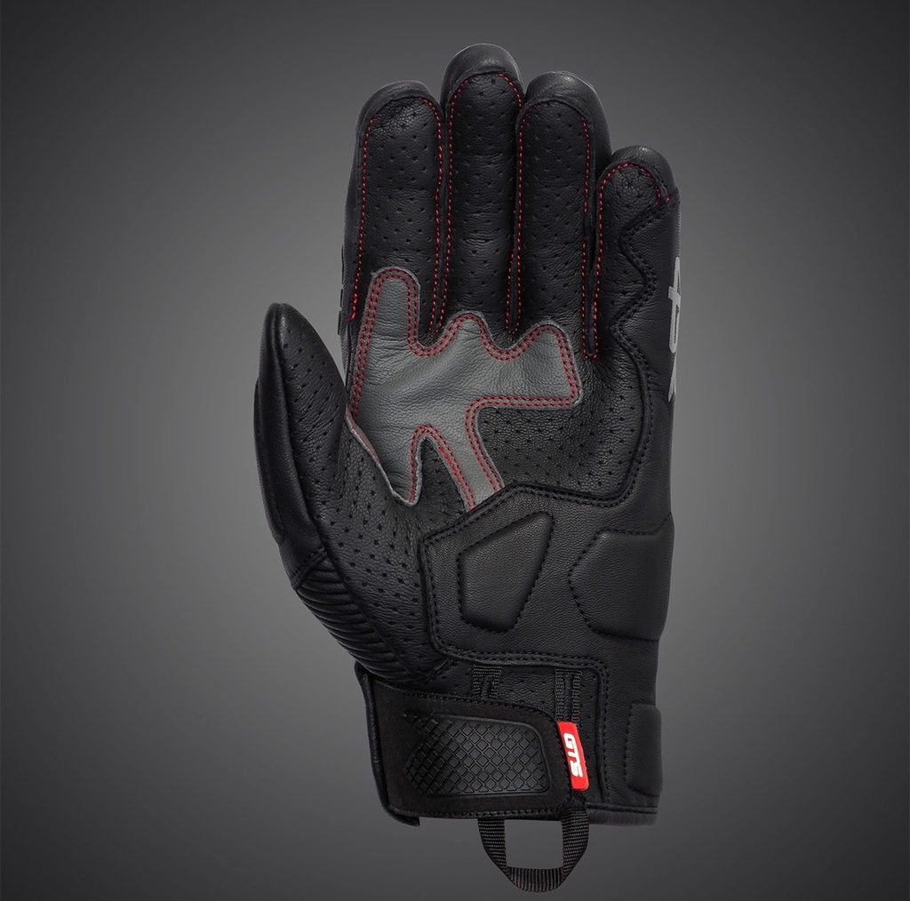 Ochrana, štýl a komfort – tri kľúčové vlastnosti motorkárskych rukavíc GTS, ktoré ocení každý jazdec. Kĺby chránia odolný plastový 3D chránič, zatiaľ čo penové vankúšiky na palci, chrbte ruky a dlani pridávajú ďalšiu vrstvu ochrany i pohodlia. Moto rukavice sú kompletne perforované pre lepšiu ventiláciu a príjemný pocit pri jazde v letnej premávke. Vrchnú časť rukavíc zdobí neprehliadnuteľná potlač logy 4SR. Zápästná manžeta, s bielym silikónovým logom 4SR, je ukončená štruktúrovaným gumovým dielom, ktorý prispieva k pevnému zapnutiu bez preklzu. Nasadenie rukavíc navyše uľahčuje praktické putko na vnútornej strane spodného lemu.