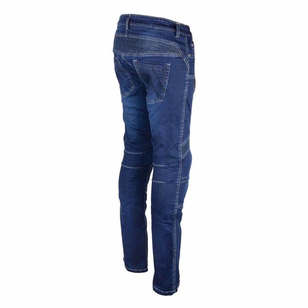 Pohodlné motocyklové džíny klasického střihu s 5 kapsami. Kevlarová podšívka na exponovaných místech a CE certifikované chrániče zajišťují vysokou míru bezpečnosti při jízdě na motocyklu. Díky strečovým harmonikovým panelům a příměsi elastanu se džíny snadno přizpůsobí jizdní pozici na motorce a neomezují vás v pohybu.