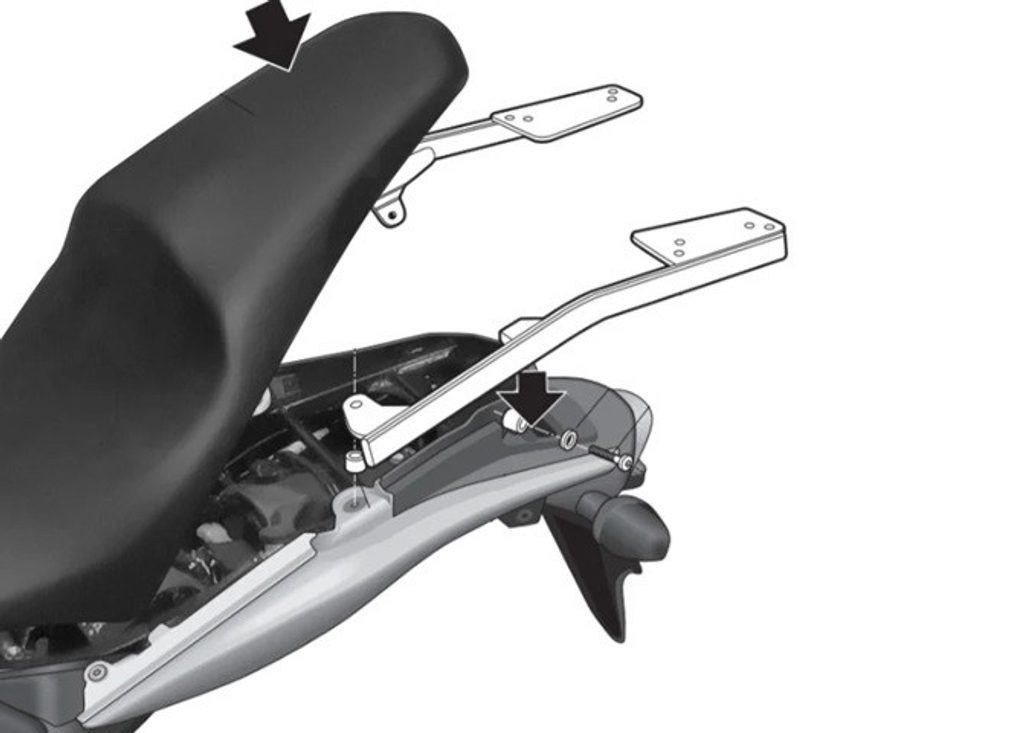 K upevnění vrchního kufru SHAD na motorku stačí namontovat tuto montážní sadu, plotna je vždy součástí kufru (kromě kufrů TR48/TR37).