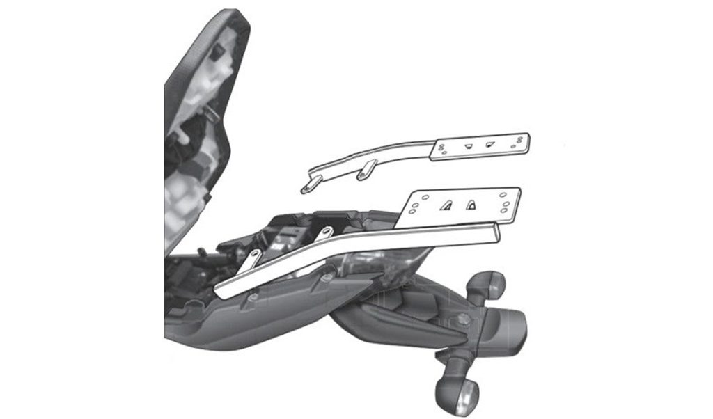 K upevnění vrchního kufru SHAD na motorku stačí namontovat tuto montážní sadu, plotna je vždy součástí kufru (kromě kufrů TR48/TR37).