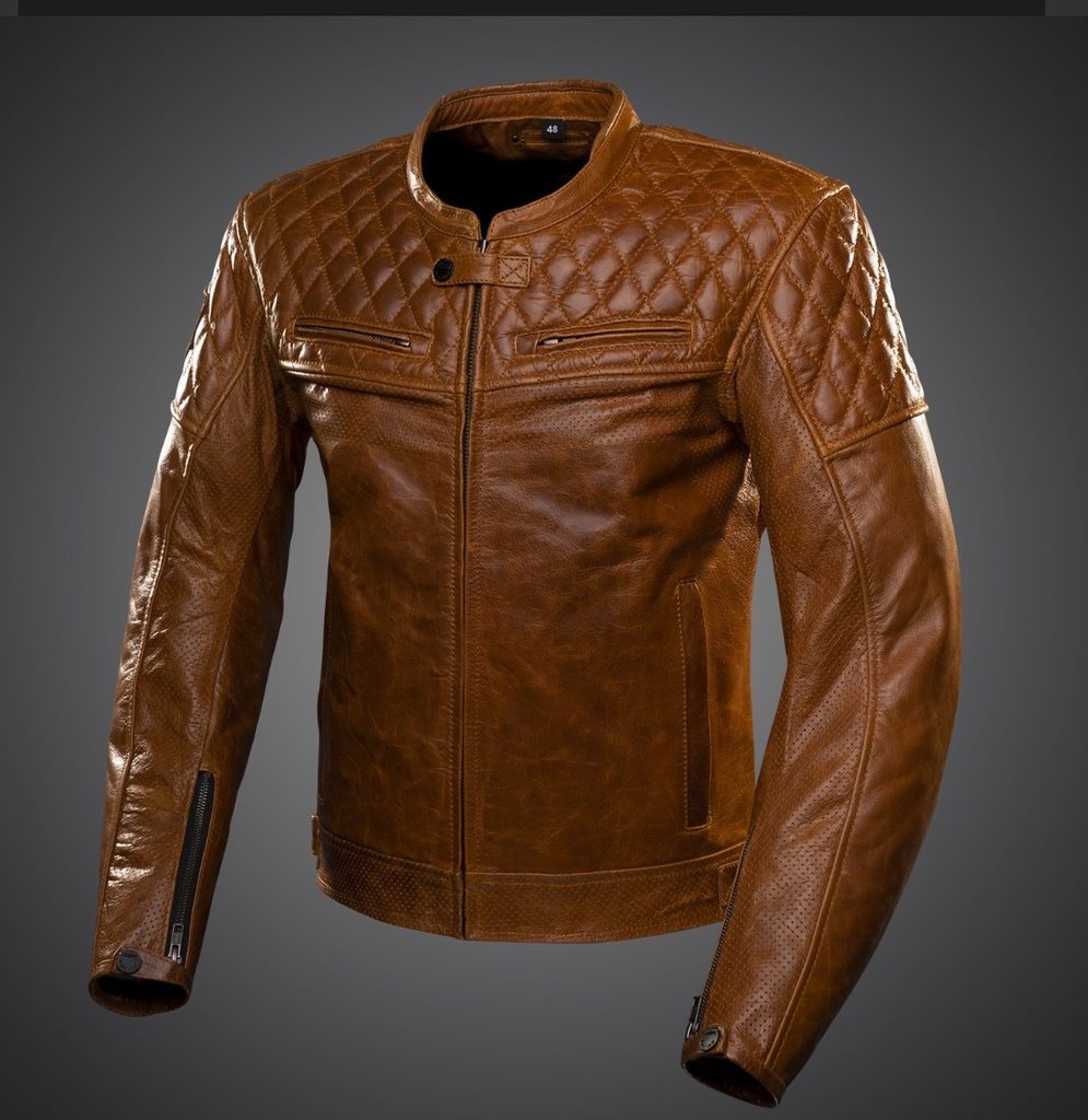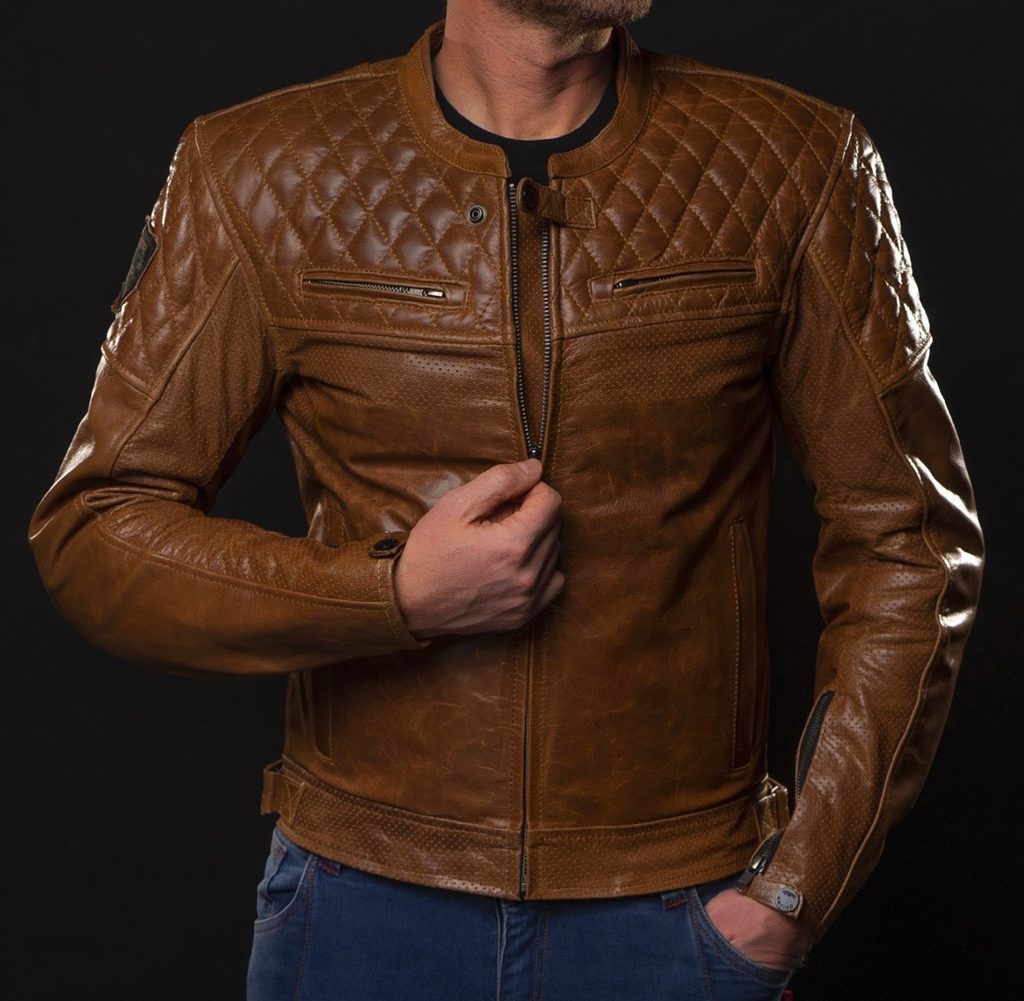 Luxusná a štýlová motocyklová bunda z prémiovej buvolej kože, ktorá má iskrivo hnedú farbu, ako tie najlepšie koňaky.