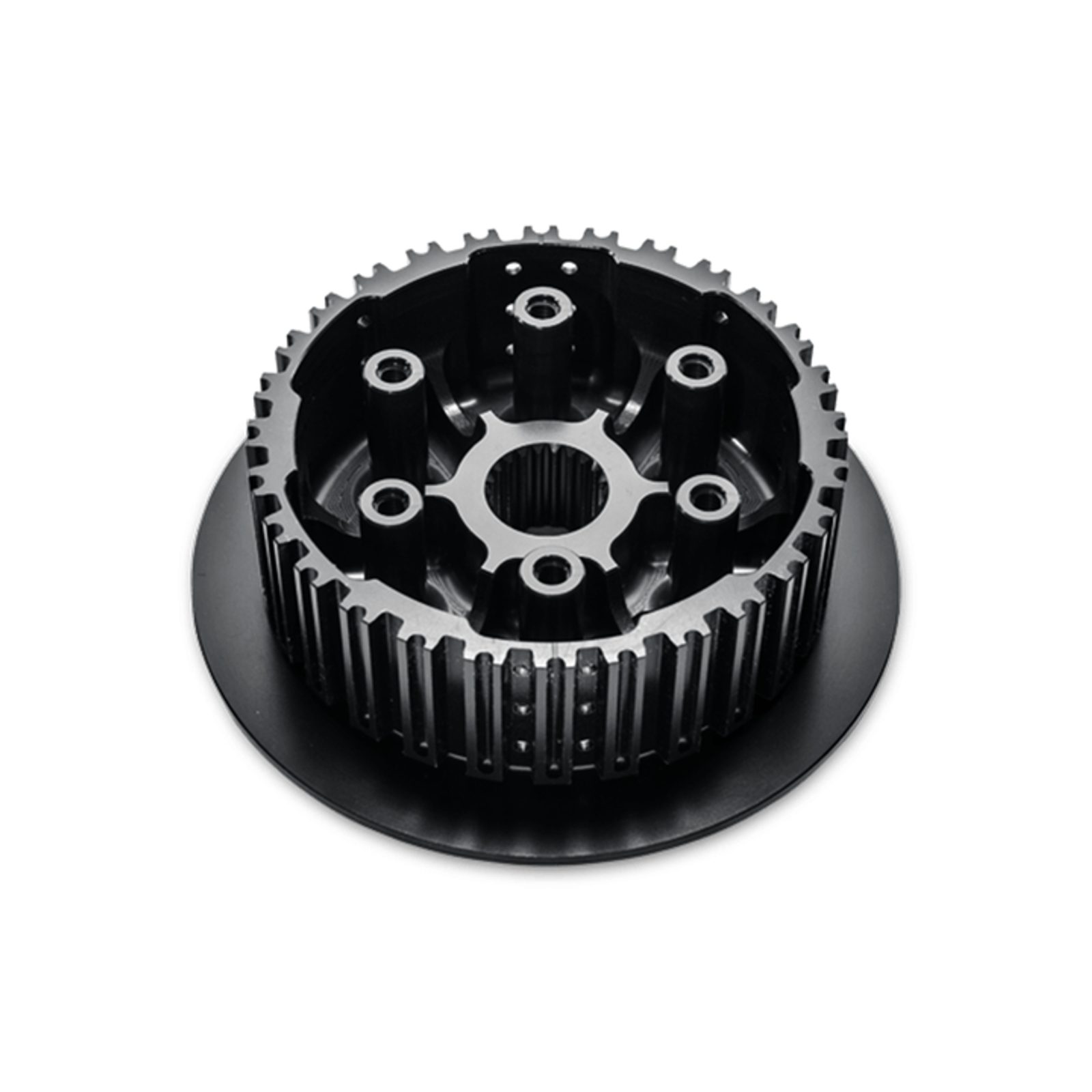 Improves clutch performance and life. Smoother more positive starts. Increased oil dynamics help keep the clutch cool. Improves heat dissipation. Helps eliminate clutch chatter. Allows clutch assembly to spin more true creating less heat when clutch is disengaged and providing a more positive, smooth clutch engagement. Precision machined from billet T-6 aircraft quality aluminum to aerospace tolerances, and hardcoated to provide a high resistance to wear* (*with proper maintenance). Can be used with all other OEM clutch baskets and clutch plates & springs* (*unless otherwise specified).