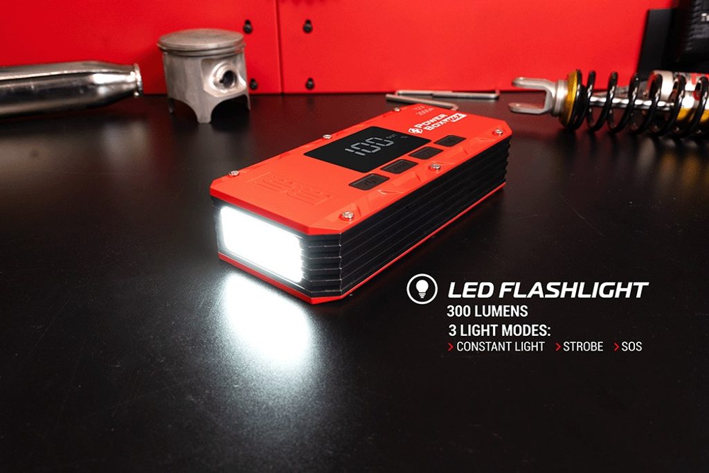 Je bezpečný a všestranný – je vybaven chytrými kabely s ochranou proti jiskření, ochranou proti přepólování, USB výstupy pro napájení zařízení, LED svítilnou se 3 režimy svícení a LCD displejem. Dodává se s kompletní sadou příslušenství a ochranným úložným pouzdrem.